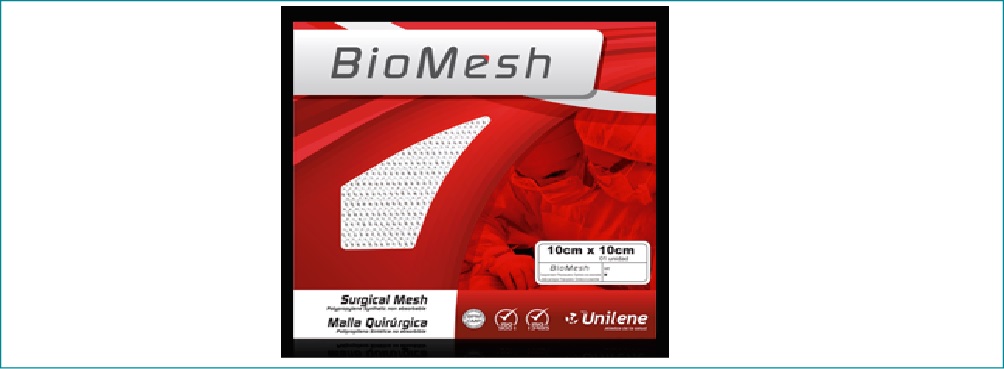 Biomesh, Malla Quirúrgica está construida de monofilamentos de Polipropileno. Permite una respuesta fibroblástica a través de los intersticios de la malla formando una pared fibrosa fuerte, es inerte en caso de infección. Esterilizado por Óxido de Etileno. |